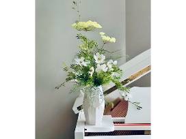 The beautiful permanent bouquet makes this the perfect centerpiece!