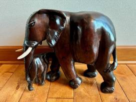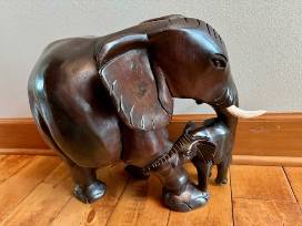 Hand-Carved Elephant & Baby