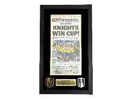 Commeorate the Knights' Stanley Cup win with this original Las Vegas Review-Journal newspaper signed by 21 members of the team including Stone, Karlsson, McNabb, Theodore, Barbashev, Hague, Smith, Martinez, Carrier, Brossoit, Roy, Howden, Pachal, Thompson, Coach Cassidy, Stephenson, Quick & more! This newspaper is an ultra-rare limited edition, with only 12 ever signed, making it a highly sought-after item unlike most other team-signed memorabilia you will find from the Stanley Cup 2023 team.