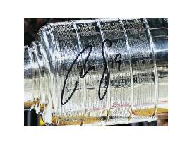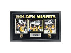 This museum-quality piece is professionally custom framed with double matting, featuring a suede top mat and a silver nameplate detailing player information. It includes a laser-cut "Golden Misfits" header, commemorating their Stanley Cup victory, and measures approximately 34" x 24". Ready to hang with a wire on the back, this collage is the ultimate addition to your wall.