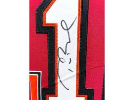 Tom Brady and Tampa Bay fans, behold your calling! This framed collage showcases a Buccaneers jersey autographed by the 7-time Super Bowl Champion himself, Tom Brady. The Authentic Nike Limited Red Home Jersey bears Brady's signature, penned in 2021. Ideal for man caves, offices, game rooms, and lady lairs alike!
