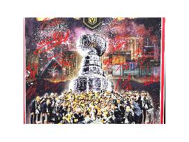 Commemorate the Knights' Stanley Cup win with this Parade Poster signed by 21 members of the team including Stone, Karlsson, McNabb, Theodore, Barbashev, Hague, Smith, Martinez, Carrier, Brossoit, Roy, Howden, Pachal, Thompson, Coach Cassidy, Stephenson, Quick & more! This poster is an ultra-rare limited edition, with only 12 ever signed, making it a highly sought-after item unlike most other team-signed memorabilia you will find from the Stanley Cup 2023 team.