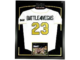 Check out this official on-field Battle for Vegas jersey that features the authentic autographs of Team Reilly's players from the 2023 Battle for Vegas Game! The jersey is signed by Keegan Kolesar, Jack Eichel, Nic Hague, Reilly Smith, Zach Whitecloud and Logan Thompson!