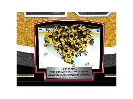 The jersey is professionally museum quality custom framed in a black frame that features suede matting throughout as well as a plexiglass display, laser cut team logos and lettering and (2) 8x10 Photos. The frame measures approximately 40" x 43"" x 2".