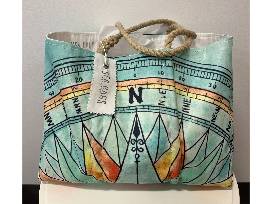 Bid on this nautically inspired, recycled sail bag featuring a compass rose design printed with ecofriendly inks. Along with the Sea Bag will be: