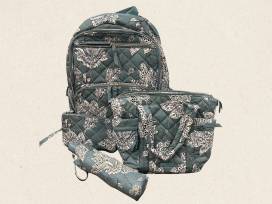VB Commuter Travel Set in Tiger Lily Blue Oar design (Commuter Backpack, Small Multi-Strap Tote, Inverted Umbrella, RFID Wristlet)