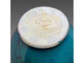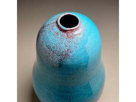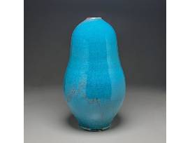 Chinese Blue Gourd Vase. White stoneware with Chinese Blue, a multi-layered copper glaze. 18.25" H x 10" Dia. Donated by Ben Owen III, Ben Owen Pottery, Seagrove, NC.