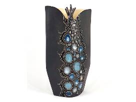 Microbiology Inspired Vase. 10.75" H x 6.25" W x 3.75" D. Donated by Sasha Bakaric, Sasha Ceramics, Chapel Hill, NC.