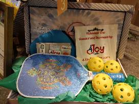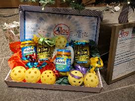 Celebrate the festive season with a unique twist at this year's holiday tree display, generously donated by 4Joy Paddles! This pickleball-themed tree is a vibrant celebration of the sport, adorned with handmade ornaments, pickleballs, and stunning, high-quality paddles by 4Joy Paddles that are sure to catch your eye. Beneath the tree, a delightful selection of pickles awaits, adding a tasty surprise to the festive cheer. Whether you're a pickleball enthusiast or just looking for something fun and fresh this holiday season, this tree is a must-see!