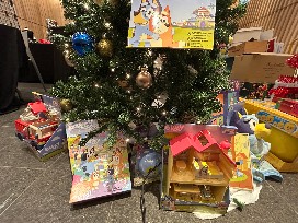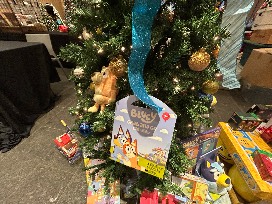 Cheese and crackers, it's a tree with all your favorite Bluey toys and decorations! This gorgeous 6 foot tree decorated in the Heeler family colors (tan and blue, of course) comes with so many ways to have fun with Bluey, Bingo, Bandit and Chilli. There's the family car, a fire truck, figurines of all the family and friends, stuffed animals, a drum kit, a blanket, jewelry, the Heeler house playset, puzzles, stickers, a ball, a scavenger hunt game, even a talking Bluey stuffie! If you and your family love Bluey as much as we do, you'll want to bring this tree home.