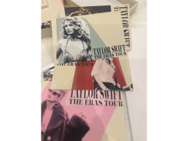 This tree includes many VIP special presents from Santa such as a stuffed toy cat, a clay beads jewelry making kit, the essential Taylor Swift Trivia Book, a Swiftie Composition Notebook, a Taylor Swift Magazine Recap of The Eras Tour, two chocolate letters (T & S) from Li-Lac, and now that the ERAS tour is over...a soon to be rare...limited edition ERAS tour VIP Box, (posters, tote bag, VIP entrance badge/lanyard). You can clap now!