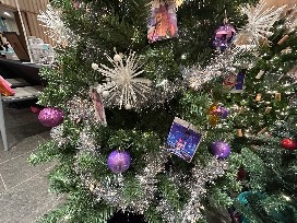 Please hold your applause while we present to you the SWIFTMAS Tree! Perfect for any Swiftie of any age!! Decorated with all things Taylor Swift...iridescent sunglasses and pencils, silver stars draped with bracelets, lavender ornaments, special Swiftie themed ornaments, topped with a silver sequined hat and finished off with a purple sequined tree skirt