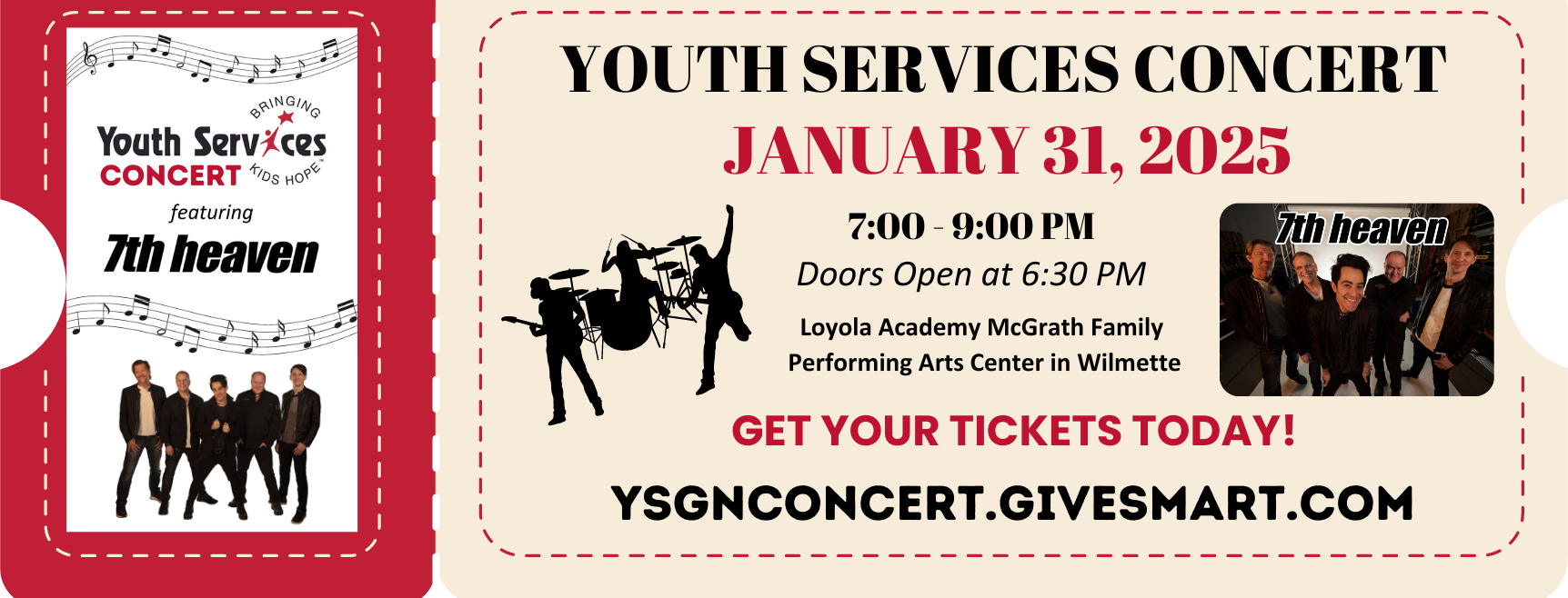 Join us for a fun night of singing and dancing with one of Chicago's most popular rock bands, 7th Heaven, all while supporting a great cause!