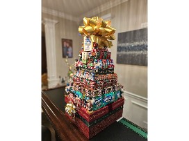 Everyone's going to want the latest trending, TikTok-famous, and nostalgic candy - 3 ft. tall candy tower includes Dubai Chocolate and other holiday candy, filled with a Madeline Santa and other surprises! This would be the perfect addition to your holiday festivities... or just keep it for yourself, we won't tell!