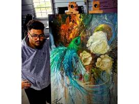 "The Nightingale" is an original mixed media painting done by former Wellroot resident and current Vice President of the Chattanooga Civic Arts League Kaleb Knowles. This painting is absolutely stunning and would look amazing in any home or office. Painting size is 48x36.