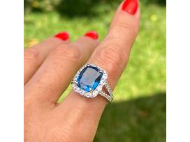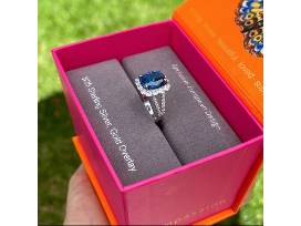 Bold yet timeless, this exquisite cocktail ring is a head-turner and makes the perfect travel accessory! Beautifully designed in California and finely crafted in solid 925 sterling silver with gold overlay and the world's most desirable simulated diamonds and blue sapphires ever created, in a special ice cut shape, for infinite brilliance! Hypoallergenic. Size 7 fits most. Wear it on several fingers. Outstanding packaging for gifting or to hold your keepsakes. Created exclusively for the philanthropic community!