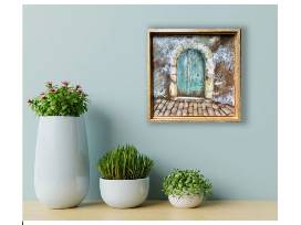Artist, Christine Deemer, uses encaustic medium, oil pigment painted on a wood panel to invite you to enter "Casa" and experience the warmth and beauty!