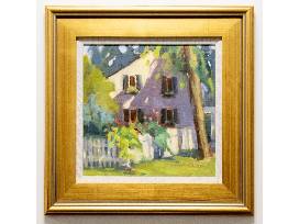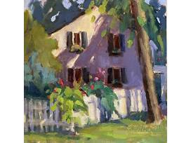 Plein air artist, Susan Bunce Ritter, has created the Corner Garden while at the 577 Foundation in Perrysburg using oil paint on a linen panel.