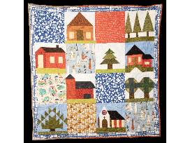 Sheila Painter, award-winning quilter, has created this beautiful patchwork quilt featuring houses, a barn, church, the neighborhood! The backing features a rust and brown fabric. (51" x 51)