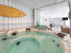 Go "Big Wave" and go Home! Big Wave is a Tybee vacation home that checks off every box to satisfy your perfect beach vacation home desires. This pristine vacation home was built with guests in mind with top-end amenities, including a gourmet kitchen, a sparkling pool, a screened-in porch, hot tub, a fenced yard, and a covered, screened entertainment area with an all-ages entertainment area for guests to enjoy.