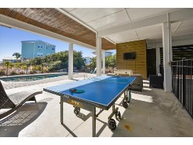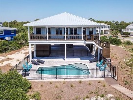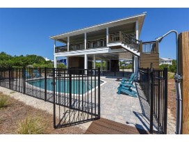 AMENITIES: Multiple TVs, DVD player, luxury plank flooring throughout, all new furniture, decor, bedding and accessories, a well-equipped kitchen with quartz countertops and stainless appliances, large covered porch overlooking private pool and Gulf of Mexico, outdoor lounge area, under house area, with picnic table, sofa, outdoor TV and games such as a Ping Pong table, Foos Ball, and Corn Hole, gas grill, outdoor shower, under house parking and boardwalk off the back of the pool area takes you to the beach path.