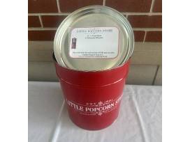A keepsake tin filled to the brim with popcorn from The Little Popcorn Store in downtown Wheaton.