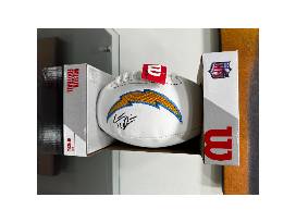 This football has been personally hand-signed by Cameron Dicker. It is officially licensed by the Los Angeles Chargers Football Team and comes with an individually numbered certificate of authenticity.