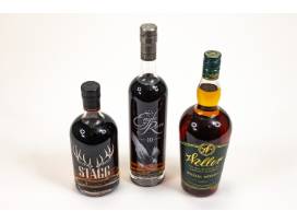 Discover a rare opportunity to own three distinguished bourbons from the legendary Buffalo Trace Distillery. This exceptional trio features a 750 mL bottle of Stagg Bourbon, a bold, high-proof cask-strength masterpiece with deep caramel and chocolate notes. The collection also includes a 750 mL bottle of Eagle Rare, aged ten years to perfection, offering rich notes of honey, oak, and leather with a long, satisfying finish. Completing the set is a 1 L bottle of Weller Special Reserve, a wheated bourbon with a soft, approachable profile and a touch of sweetness that makes it a favorite for sipping or mixing. Whether you're a seasoned connoisseur or a passionate collector, this set is an unparalleled addition to any collection.