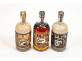 Indulge in a unique whiskey experience with this trio of Ballotin 750 mL bottles, each offering a rich and decadent flavor profile. The set includes Chocolate Mocha Whiskey Cream, a creamy blend with the perfect balance of rich chocolate and bold coffee notes; Chocolate Toffee Whiskey, which combines smooth toffee sweetness with the warmth of whiskey for a truly luxurious taste; and Chocolate Peanut Butter Whiskey Cream, a deliciously indulgent mix of creamy peanut butter and chocolate flavors. Perfect for gifting or adding to your own collection, this set is a must-have for any whiskey connoisseur or chocolate lover!