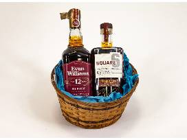 This exceptional bourbon basket features two 750 mL bottles from the prestigious Heaven Hill Distillery. The first is a bottle of Evan Williams Straight Bourbon, aged 12 years, known for its smooth complexity and rich flavor profile. The second is a bottle of Square 6 Straight Wheated Bourbon, distilled by the renowned Evan Williams Bourbon Experience, offering a distinctive taste crafted with expert care. This set is a must-have for collectors and connoisseurs alike, perfect for savoring or adding to your collection.