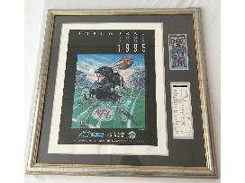 Featuring the original game ticket alongside a commemorative poster, this piece captures the excitement and history of the team's very first season. This item also includes the box score of the original game.