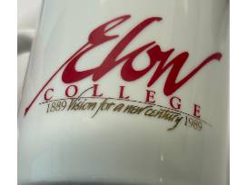 On the back of these mugs, they showcase the Elon College 1889 "Vision for a New Century" celebrating the school's first 100 years. These exclusive mugs are one of a kind.