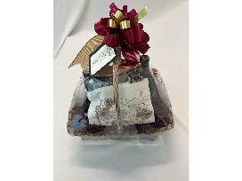 Raise a glass and toast new beginnings with this gift-ready basket! Inside you'll find Ken Wright Cellars Chardonnay, Caymus Vineyards Cabernet Sauvignon, two Elon wine glasses, Elon cocktail napkins, an Elon campus tea cloth, gourmet snacks, and a festive acorn ornament. Thoughtfully sourced from local favorites For All Occasions, All That Jas, and Barnes & Noble at Elon University, it's the perfect housewarming, birthday, or holiday surprise!