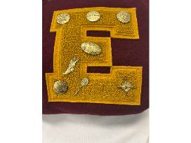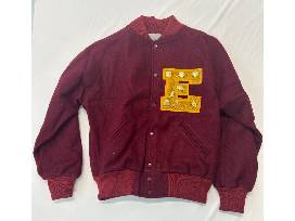 What makes this jacket so special is the exclusive pins on the varsity letter E. Pins included are Volleyball, Basketball, Softball, Football, Track and Field, Soccer, Tennis, and Baseball. This jacket is a custom made TM Athletics Varsity Coat and is 100% Wool. The Jacket is Size 42. Get this exclusive piece of history today!