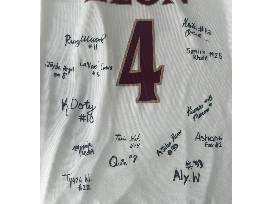 This authentic white Elon Women's Basketball jersey has been signed by the entire 2025-2026 team! This is great for Elon fan, parent, or alum looking to add a cool piece to your home or office.