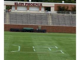 Now is your opportunity to paint the Elon E and logos on the Rhodes Stadium field for a home football game! It'll be a once-in-a-lifetime experience! You will get to paint the field on a Wednesday or Thursday between 10:00 AM - 1:30 PM, right before the home game on Saturday.