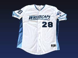 2024 West Michigan Whitecaps Game-Worn Home White Jersey. Includes Detroit Tigers logo embroidered patch on left sleeve, Whitecaps logo on right sleeve, and sewn-on player name/nameplate. Fully sublimated except for embroidered Tigers logo patch. Authentic jersey made by OT Sports. Name in bold on auction listing indicates nameplate on jersey. Includes Certificate of Authenticity. *As this is a game-worn jersey, please expect fabric snags and dirt stains. SHIPPING INCLUDED WITH JERSEY.