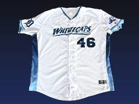 2024 West Michigan Whitecaps Game-Worn Home White Jersey. Includes Detroit Tigers logo embroidered patch on left sleeve, Whitecaps logo on right sleeve, and sewn-on player name/nameplate. Fully sublimated except for embroidered Tigers logo patch. Authentic jersey made by OT Sports. Name in bold on auction listing indicates nameplate on jersey. Includes Certificate of Authenticity. *As this is a game-worn jersey, please expect fabric snags and dirt stains. SHIPPING INCLUDED WITH JERSEY.