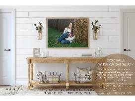 This is a one-hour senior portrait session from Minks Photography. It includes wardrobe consultation, planning, reveal, and image selection sessions, as well as two 8x10 desk prints with matching digital files.