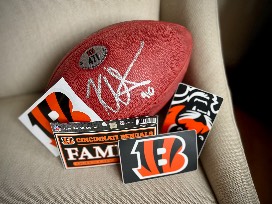 Autographed football signed by #90 Kris Jenkins, Jr., and Bengals decals