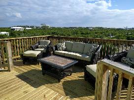 - While not directly on the water, the ocean and island views at Layin' Low are incredible! The "S" shaped deck takes advantage of the large sections facing east in "Sunrise" and west in "Sunset."