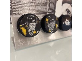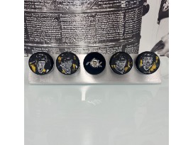 Bid to win this Alumni Art Puck Set, created by Pittsburgh Artist Kait Schoeb, capturing the essence of 4 Stanley Cup Champions and Hockey Hall of Famers.