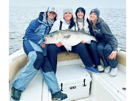 Join the world famous Brackish Babes for a half day on the Bay for up to 2 anglers THIS WINTER chasing HUGE Rockfish!