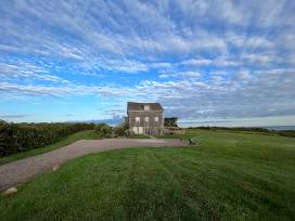 Fabulous direct waterfront Cooneymus Cottage w/central air, unparalleled ocean views looking West for the stunning Block Island sunsets! Five bedrooms, 2.5 baths, modernly furnished with gourmet kitchen and lots of outside patio space to have memorable family meals. 1 King, 2 Queen, 1 double twin upstairs, and 1 double twin lower. Nice large, open backyard. Path off backyard goes to Cooneymus Beach!
