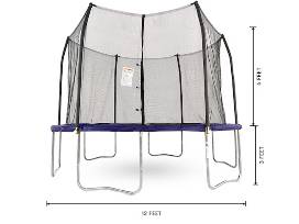Bring endless fun to your backyard with the Skywalker 12 ft. round trampoline with enclosure. Designed for safety with a sturdy galvanized steel frame, welded T-sockets, and a padded, gap-free enclosure net, this trampoline offers years of bouncing fun. Built with UV-resistant materials, it's perfect for family-friendly outdoor enjoyment!