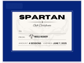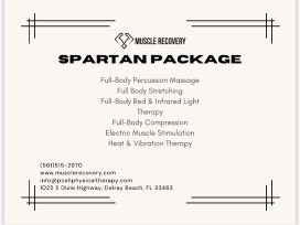 Muscles need special attention! Four sessions of the Spartan package which includes: full body percussion massage, stretch program, heat and vibration, infrared/red light therapy, vasopneumatic compression, and electric muscle stimulation (EMS). Delray Beach Location.