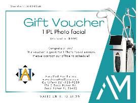 Enjoy one IPL Photo Facial with a Gift Voucher to AuraMed Aesthetics in Boca Raton. AuraMed uses state of the art technology with IPL to expertly treat reds, browns and difficult vascular lesions.