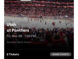 Enjoy two tickets to the Florida Panthers vs. Utah on March 28, 2025, at 7:00 pm at The Amerant Bank Arena. Tickets are in Section 133, Row 6 Seats 1 & 2. Grab a bite at the Cheesecake Factory ($100) before you head to the game. Parking not included.