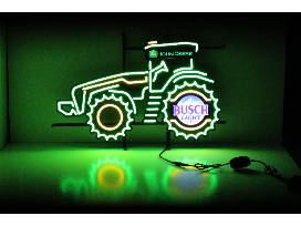 A design incorporating the iconic John Deere green and yellow tractor imagery with the Busch Light beer logo, often made with flexible LED neon strips and acrylic backing for a durable and energy-efficient light. 16"x24"