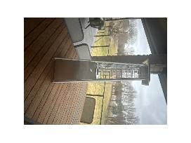 Stainless steel firepit features an engraved Coyote paw logo and "COYOTES" etched on the chimney. Perfect for any Coyote fan's patio or tailgate setup!